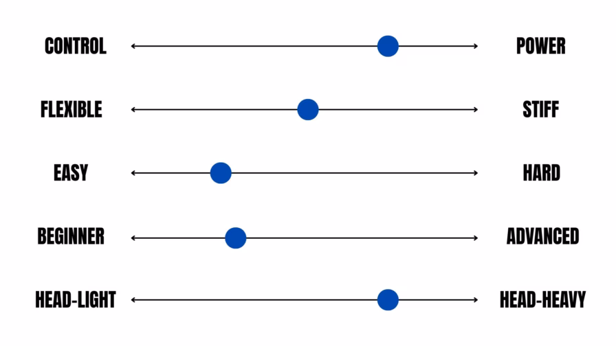 Control vs. Power: Indicates whether the racket focuses more on control or power. All rackets offer both advantages, but each leans more toward one aspect.