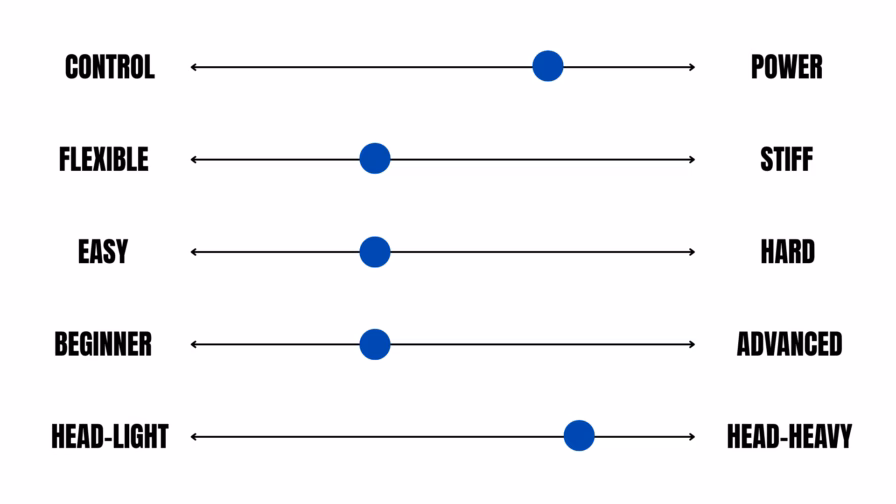 Control vs. Power: Indicates whether the racket focuses more on control or power. All rackets offer both advantages, but each leans more toward one aspect.