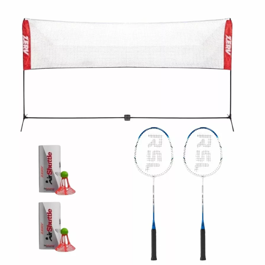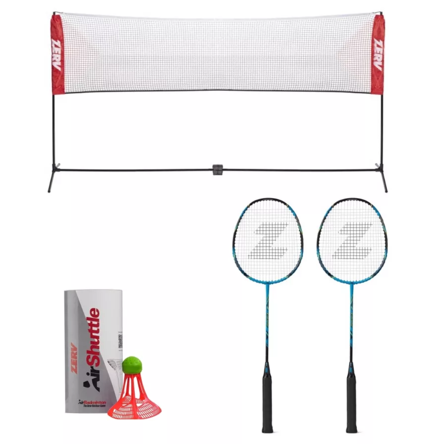 You get 2 ZERV Bolt 22 rackets, 1 badminton net and 2 tubes of 3 ZERV Air Shuttle II outdoor shuttlecocks – WOW! All in one package at a great price!