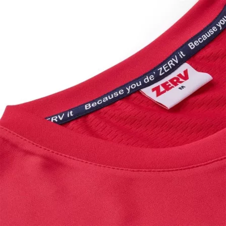 The T-shirt´s design is made quite simple but it also has a clean stylish look. It also have details like the classic pattern on the chest which fits perfectly with the nice bright red colour of the shirt and in the neck ZERV´s slogan "Because you de´Zerv it".