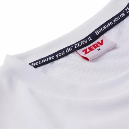 The T-shirt is made in a simple stylish look. However it also has some nice details. In the neck it has ZERV`s slogan "Because you deZERV it" and on the front it has a classig design which fits well with its clear white colour.
